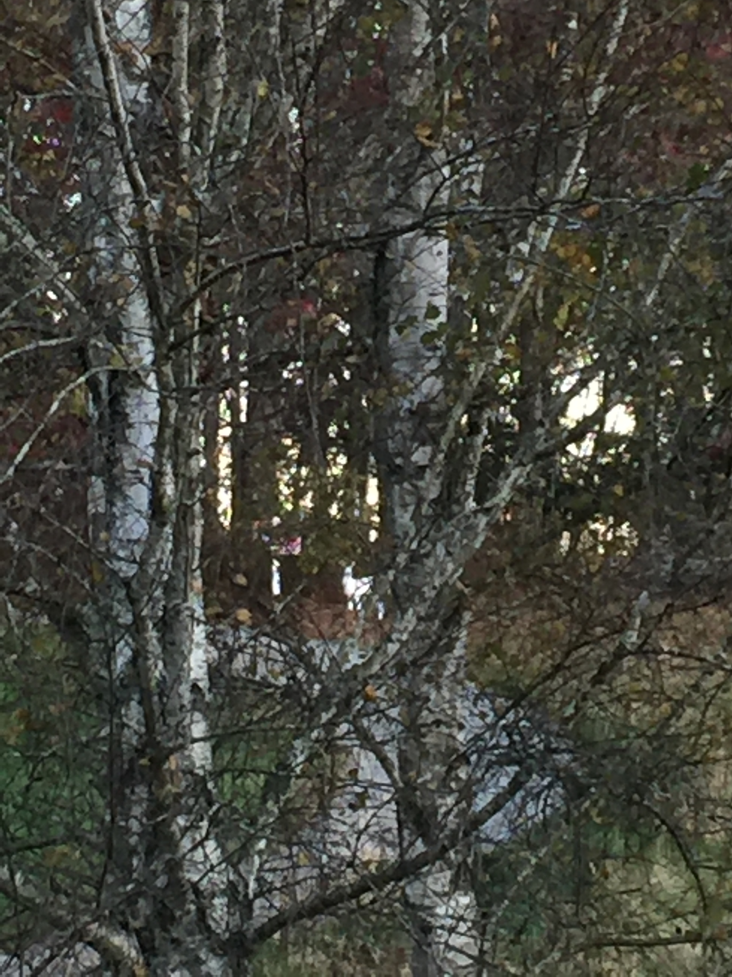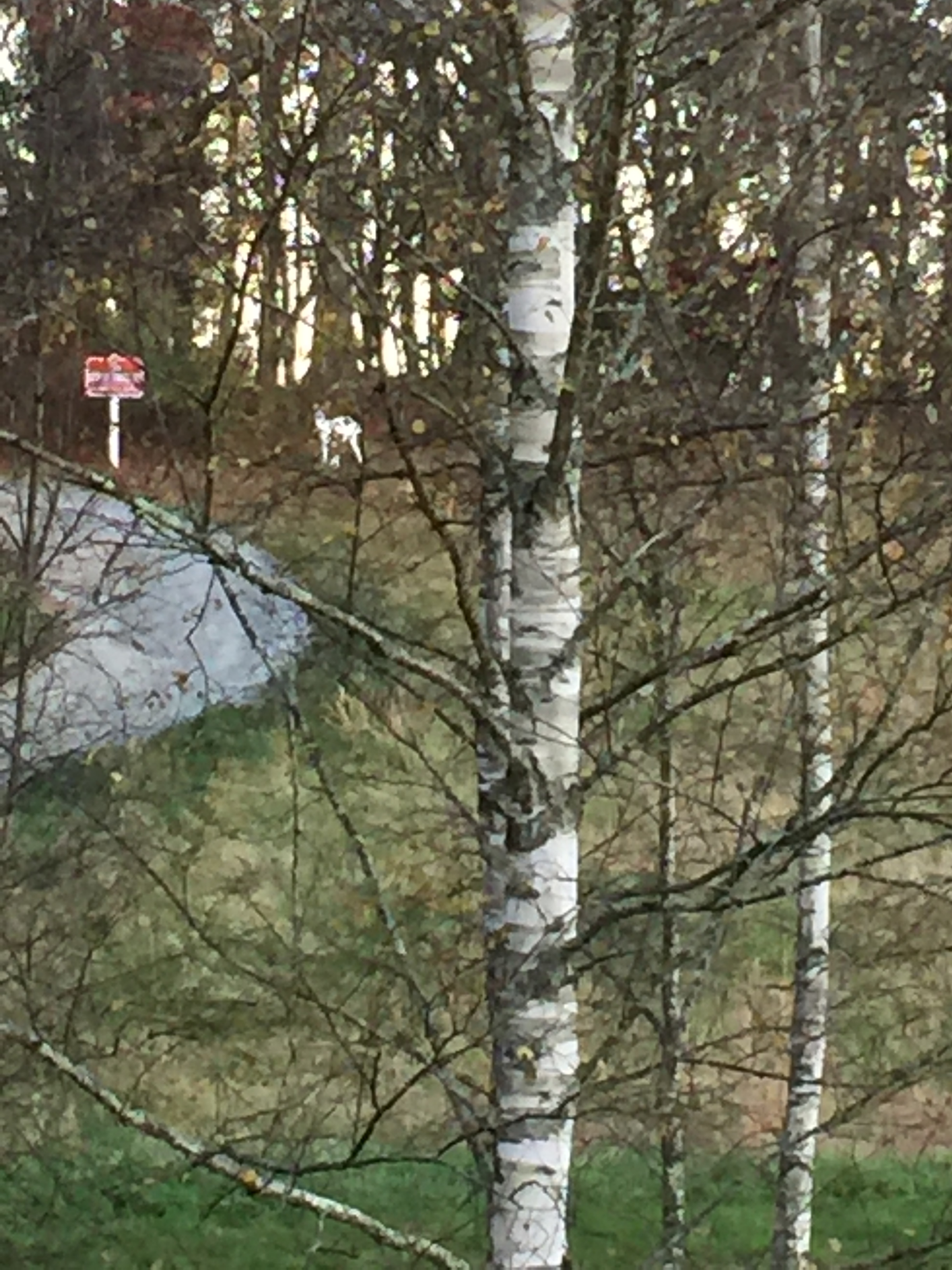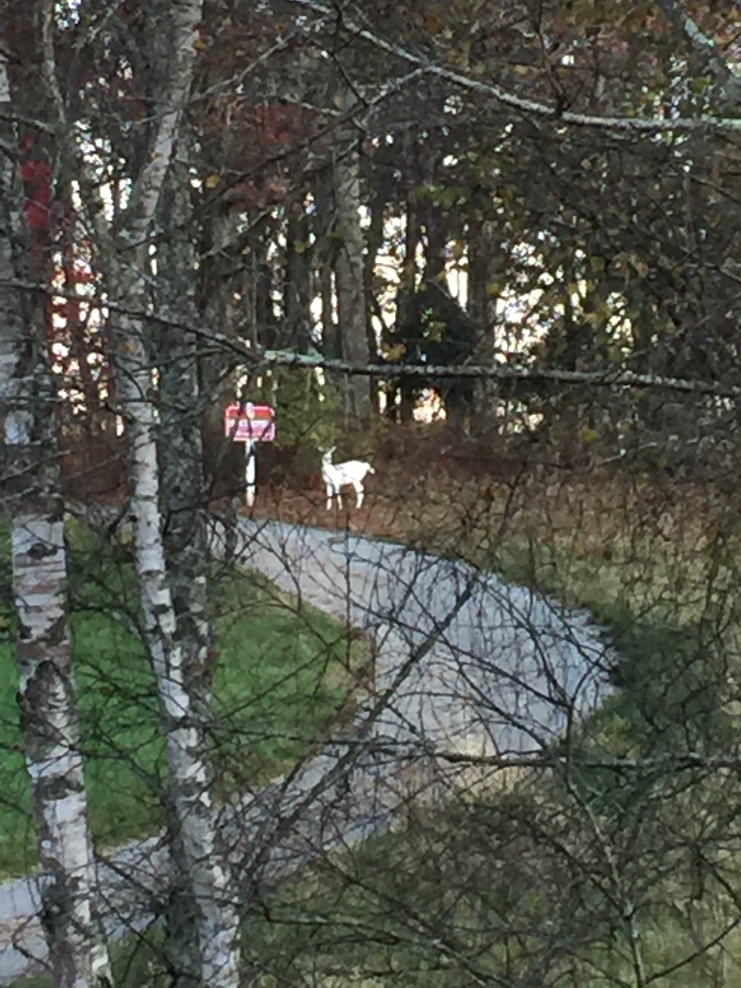 But I have to share with you a rare sight that I saw a few days ago. Rare even for this locale–it was a an almost completely white deer! Some call it a Spirit Deer. There are those locally who say this deer is not a true white or albino deer, but a piebald deer–one that has both white and brown spots. I could not get close enough to get a truly great picture–but this was the only time in my life that I have ever seen a white deer. I didn’t see any brown spots on this beautiful creature–and I am afraid I may bore you but I will put a few pictures here so that you can see that she changes positions. There are many native American legends and others about a beautiful white deer. One in Virginia specifically tells us that the young Virginia Dare had become a white deer and returned to human form only at her death from a hunter’s arrow.